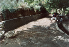 eine Stützwand, die einen Olivenhain vor weiterer Erosion schützte,